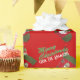 Este dulce personalizado Navidades envuelto en papel muestra una fotografía de un caldo rojo y verde con un adorable muñeco de nieve vestido con una bufanda estacional de yeso y un gorra sobre un fondo rojo. Puede eliminar el texto verde de color blanco delineado Feliz Navidad agregado al fondo y, a continuación, hacer clic en Personalizar para agregar texto en un estilo de letra, color y tamaño que prefiera. Rellene el campo de la plantilla con su nombre, quite el texto o, en personalizar, seleccione un estilo de fuente, color y tamaño que prefiera.