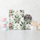 Un ilustracion de flores muy bien cuidado, compuesto por varias hojas y ramas verdes, adornado con bayas rojas brillantes. La corona presenta mistletoe, holly y follaje verde con sutiles toques de iluminación, lo que le da un ambiente festivo y elegante. El diseño es delicado pero vibrante, perfecto para decoraciones temáticas de Navidad o obras de arte de temporada. El zorro lindo vestido con un sombrero de Santa sonrisas sentado en la rama. ¡Cambie la foto y el nombre de su querido bebé y tenga un papel de envolver de regalo familiar festivo! ¡Una alegre adición a cualquier celebración de Navidades!