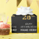 Este diseño de papel de regalo temático de cumpleaños elegante y lujoso presenta el mensaje "FELIZ 28 CUMPLEAÑOS,", un nombre personalizado, y el número de cumpleaños "28" con un patrón de apariencia de oro falso/imitación. El fondo es de color negro. Papel de regalo como este podría ser utilizado al envolver regalos que se darán en celebración del cumpleaños número 28 de alguien. [~Z0000454]