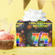 Este alegre y alegre diseño de papel envolvente de cumpleaños presenta un gran número de "74" con un colorido patrón inspirado en el gradiente del espectro del arco iris, junto con el mensaje "Feliz cumpleaños número 74", y un nombre personalizado. El fondo presenta un patrón colorido inspirado en la apariencia de fuegos artificiales de celebración. El papel de envolver como este se puede usar cuando se da un regalo o regalo en honor de los setenta y cuatro años de alguien. [~Z0000587]