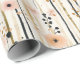 Papel De Regalo Cumpleaños de Flores y Rayas en Rosa y Dorado