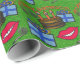 El papel de envoltura de regalo de pesos pesados presenta una pintura digital original de lindos cortes de fieltro que incluye una torta de cumpleaños de chocolate con velas y llama, paquetes azules envueltos con arco multicolor, silbidos de papel de soplo de moda, una gran sonrisa, y las palabras "¡FELIZ DÍA DE NACIMIENTO!" en un divertido tipo de cráneo, colocado en un tablero de fieltro verde brillante y kelly verde. ¡Para todos los niños y los jóvenes del corazón!