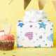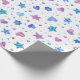 Este encantador papel de envoltura "Frozen Fairy Tale" está diseñado con una mezcla caprichosa de estrellas, corazones, flores y puntos de polka en tonalidades frescas de azul, púrpura y rosa. Los encantadores patrones le dan un toque mágico, de invierno, perfecto para una celebración de cumpleaños con temática de la Princesa de Hielo.