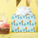 ¡Mira quién está teniendo un cumpleaños! Un búho azul divertido con cielo azul y nubes esponjosas. Edad del niño sostenida por globos