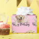 Traidor dorado con ramo de margarita blanca sobre fondo rosa para el cumpleaños. Se puede cambiar el color de fondo.