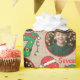 Turn holiday gifts into keepsakes with this customizable Christmas wrapping paper. Cheerful elf-style numerals and Santa-hat accents repeat across a warm kraft-look background with circular photo windows—perfect for showcasing a child, pet, or family photo. Add a name or short message, choose sheet size and single/double-sided print, then preview before you buy. Ideal for Christmas morning, family gift bundles, teachers, and grandparents who love a personal touch.