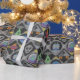 Este papel de envoltura Cute Alien tiene un lindo patrón de suéter alienígena nórdico basado en el tema de los diseños clásicos de punto Fair Isle. El patrón es de círculos grises y negros y rayas de diamante. Cada forma tiene diferentes adorables motivos extraños retro. Tienes un lindo robot retro, secuestro de OVNI, un barco espacial con alienígena verde, una cabeza extraterrestre gris, sistema solar, una planta extraterrestre, pistola de rayos retro y un luchador estrella. Entre el patrón hay lunas y estrellas.