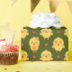 This sweet repeating pattern features cheerful yellow chicks with playful expressions, surrounded by tiny pink hearts for an extra dose of charm. Each chick has its own personality — smiling, blushing, dreamy, and heart-eyed — creating a lively, joyful rhythm across a rich green background.