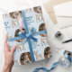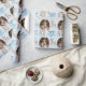 Cute Baby's 1st Christmas Photo Reindeer Wrapping Paper. Make your holiday gifts truly unforgettable with our enchanting personalized wrapping paper. This unique design features a charming grid layout, showcasing your precious baby's photo alongside an adorable whimsical reindeer illustration and festive 'Holly Happy Merry' text. Easily customize it with your child's name. Perfect for baby's first Christmas, family presents, or any special gift.