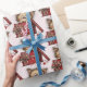 Wrapping paper with a cute drawing of a little kitten poking its head out of a gift box.