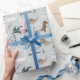 Papel De Regalo Cute Dinosaurs Footprints & Custom Name Light Blue