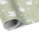 Cute wrapping paper with geese, eggs and goose footprints pattern on sage green