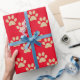 Este adorable papel de envoltura para los amantes de las mascotas presenta un lindo patrón de impresión de purpurina de oro falso sobre un fondo rojo. Hace un excelente Navidad o envolvimiento de regalo de vacaciones.