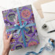 Este papel de envolvimiento de Halloween Cute tiene un patrón de suéter de punto de punto de punto de corte de Halloween basado en el tema de los diseños clásicos de punto de Fair Isle. El patrón es de círculos morados y verdes y rayas de diamante. Cada forma tiene diferentes adorables motivos de Halloween. Tienes gato negro con luna, cabeza de Frankenstein, calabaza de linternas de jack o’ feliz, cráneo con cuervo de ojos rojos, brujas gorra con pies, patio de tumbas con fantasmas, labios/dientes de vampiros con murciélagos y un patio de vallas con un árbol de otoño y la luna con un murciélago. Entre los diseños están el maíz dulce, los dulces envueltos y el diseño de un diamante.
