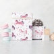 Los caballos blancos, púrpuros y rosados se crean en un patrón para hacer el envolvimiento perfecto para un chica y amante de los caballos.