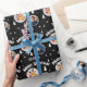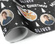 Cute Reindeer Kid`s Name Photo Merry Christmas Wrapping Paper. Cute deer on a black background with white snowflakes, stars and trees. This gift wrap has a name and a photo template - personalize it with your name and photo.