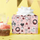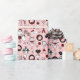 Perfect for wrapping children’s presents, family gifts, or adding a playful pop of color under your Christmas tree. The soft pink background and black, red, and white illustrations make it stylish yet festive for all ages.