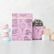 un lindo envoltorio de regalo de cumpleaños en un color bebe rosado con pequeños artículos relacionados con el cumpleaños.