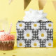 Patrón de dais blancos sobre un fondo de gingham blanco y negro.