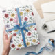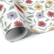A daisy pattern in doodle pen and ink style with autumn colors of butter yellow, crimson, and purple decorates this gift wrap. Design is AI-generated by IveyCottage.