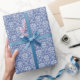Un diseño clásico y elegante de damasquín en blanco y periwinkle.