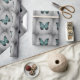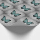 Papel De Regalo Damasco verde azulado de mariposa de época