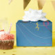 A classy wrapping paper design featuring colorful and gold music notes flowing across a dark blue gradient background. Perfect for musicians, music teachers, concerts, recitals, birthdays, and artistic gift wrapping.