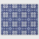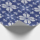 A sheet of dark blue wrapping paper with a white butterfly pattern. The top image shows the paper partially unrolled; the bottom displays it flat.