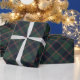 This elegant and contemporary gift wrapping paper showcases a plaid pattern in shades of green, dark blue, and red, creating a classy and nostalgic English holiday atmosphere. The paper is perfect for wrapping Christmas gifts in a classic colonial style and complements a charming country cottage or log cabin theme.