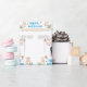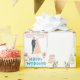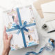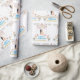 Envuelva sus regalos especiales con una elegancia atemporal utilizando este Papel para Envolver Bodas Felices que presenta un fondo blanco limpio y un diseño de arte de boda romántico de una novia y un novio alegres debajo de una elegante puerta de boda, rodeados de hermosas flores y pasteles de celebración.