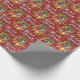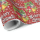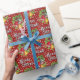 Papel de regalo de Navidad colorido con un dibujo vintage de campanas navideñas coloridas en rojo, dorado y azul con un "Navidad Feliz" anticuado y escrito a mano en rojo y verde. Se pueden pedir longitudes de rollo personalizadas.