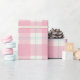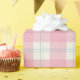 Envuelva sus regalos con un estilo clásico y elegante. Este hermoso papel de regalo presenta un patrón de cuadros atemporales en rosa suave y crema, acentuado con delicadas líneas azules claras. Es una opción perfecta para baby showers, cumpleaños, celebraciones de primavera o cualquier ocasión que requiera un toque de encanto elegante.