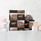 Envuelve regalos de cumpleaños con emoción usando este papel de regalo personalizado de camión monstruo! Perfecto para niños que aman los camiones, las carreras y la aventura. Cuenta con un camión monstruo rojo rugiente con llamas y una bandera a cuadros. Totalmente personalizable con el nombre y la edad del niño. Ideal para envolver regalos para celebraciones de cumpleaños con tema de camiones que capturan la emoción de los camiones monstruo! Coordina perfectamente con invitaciones y suministros para fiestas a juego.