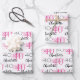 Encuentre papel de regalo de cumpleaños número 40 personalizado con tema rosa para ella. Conjunto de 3 hojas de papel de regalo con patrón de fuente genial que se pueden personalizar por separado para editar el nombre y la edad. El rosa está acentuado por tipografía negra sobre fondo blanco.