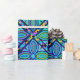 Papel de envolver de Navidad, papel de regalo colorido, papel de envolver de cumpleaños, azul verde amarillo, naranja verde rosa, arte popular tribal, arte popular étnico, arte popular mola, papel de envolver contemporáneo, Virginia Vivier, Vagabond Folk Art, papel de regalo.