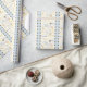 Papel de regalo de ducha de felicitaciones con corazones y flores mini y un paraguas, personalice el texto de felicitaciones al nombre para adaptarse a su bebé o día de ducha de boda. La franja azul bebé ligera detrás de los corazones se puede cambiar a cualquier color. El texto también es extraíble.