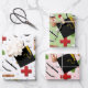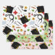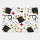 Diseño de papel de regalo de graduación de escuela de medicina de doctor creativo con suministros de atención médica y gorras de graduación.