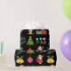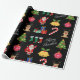 Papel de regalo de iconos de Navidad negra