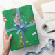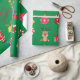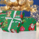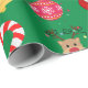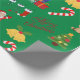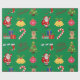 Iconos y decoraciones de Navidad verdes con papel de regalo de Feliz Navidad. Este diseño de papel de regalo presenta a Santa, regalos, renos, árbol de Navidad, calcetines, dulces, adornos y campanas de Navidad. Puedes editar para cambiar el fondo de verde a cualquier otro color si lo deseas.