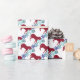 Los copos de nieve y el caballo modelan el papel de regalo del navidad para los niños, este papel de embalaje del caballo tiene un modelo del copo de nieve y caballos rojos. Los copos de nieve son azules en un fondo blanco. Papel de regalo perfecto del caballo para los muchachos o los niños.