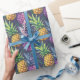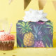 Patrón audaz de piña tropical con pinceladas pictóricas en vibrantes tonos púrpuras, rosas, amarillos y verdes sobre un fondo púrpura intenso. Este diseño llamativo presenta piñas de gran tamaño con frondas exuberantes en un estilo artístico, casi impresionista. Perfecto para celebraciones de verano, temas tropicales y cualquiera que ame patrones de frutas brillantes y alegres.