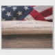 Declaración de Independencia de Estados Unidos rodada en un pergamino con una bandera norteamericana vintage