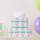 Flamenco de la diversión de las rosas fuertes que se coloca en un charco del agua. Personalice con el nombre y la edad del niño del cumpleaños.