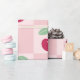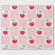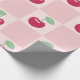 Una decoración alegre con cerezas rojas vibrantes dispuestas sobre un suave fondo de tablero de ajedrez rosa. Los colores contrastantes y el diseño retro aportan un toque alegre y nostálgico, combinando dulzura con un estilo clásico.