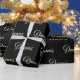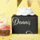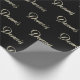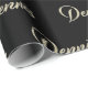 Sehr schönes edles personalisiertes Geschenkpapier im whitegold Lettering Look auf schwarz für Dennis.