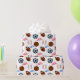 Un papel de embalaje de la diversión con un tema de los deportes, las características béisbol, el fútbol, el baloncesto y el fútbol con el texto de All Star en el fondo blanco.
