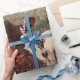 Desenvolver papel rollo de envolver embarcaciones de granja de vacas. Embalaje de regalo verde marrón de estilo rústico vintage. Derechos de imagen de Marg Seregelyi Photography.