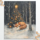 Papel de envolvimiento de desahucios con un adorable zorro dormido frente a un árbol de Navidad en el bosque.