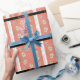 Envoltura de regalo con estampado de margarita en coral, o cualquier color que elija. El texto se puede personalizar para cualquier mensaje, ocasión especial, o el texto es extraíble.