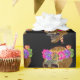 Halloween o día del papel de regalo muerto con un cráneo colorido. Fondo negro